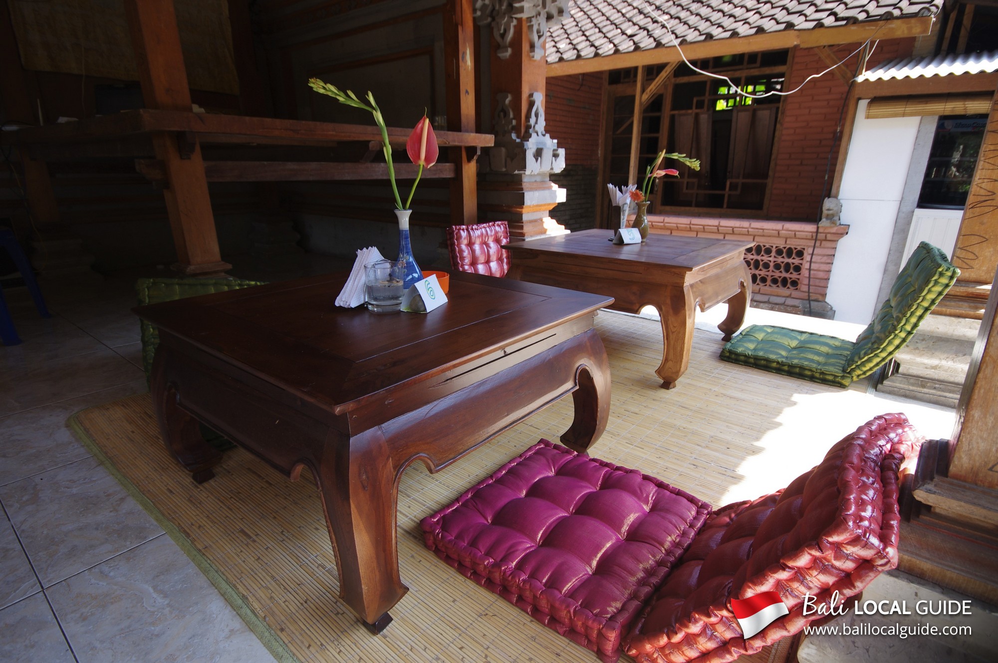 Il dispose d’une dizaine de tables. La devanture n’est pas spécialement engageante, mais le warung dispose d’une cour intérieure très agréable et calme.